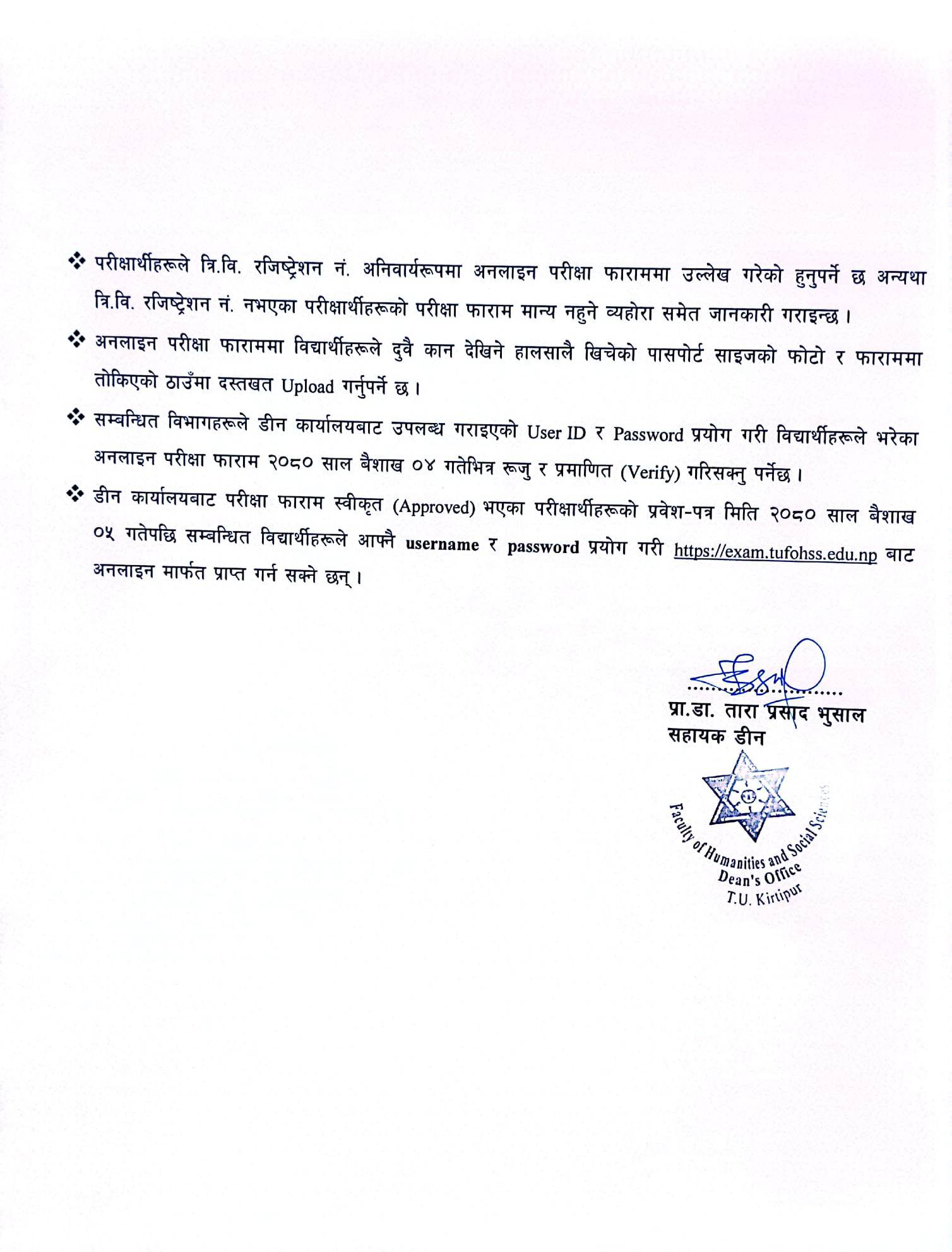 BCA कार्यक्रम अन्तर्गत छैठौं सेमेस्टरको छुट परीक्षा फाराम अनलाइन भर्ने सम्बन्धि जरुरी सूचना ।
