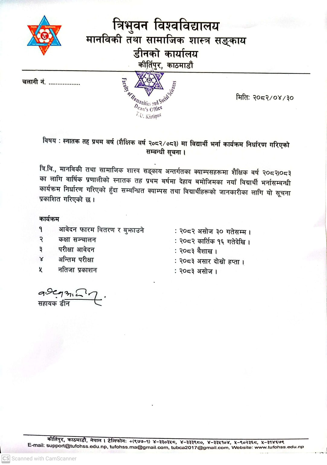 स्नातक तह प्रथम वर्ष (शैक्षिक वर्ष २०८२/०८३) मा विद्यार्थी भर्ना कार्यक्रम निर्धारण गरिएको सम्बन्धी सूचना ।