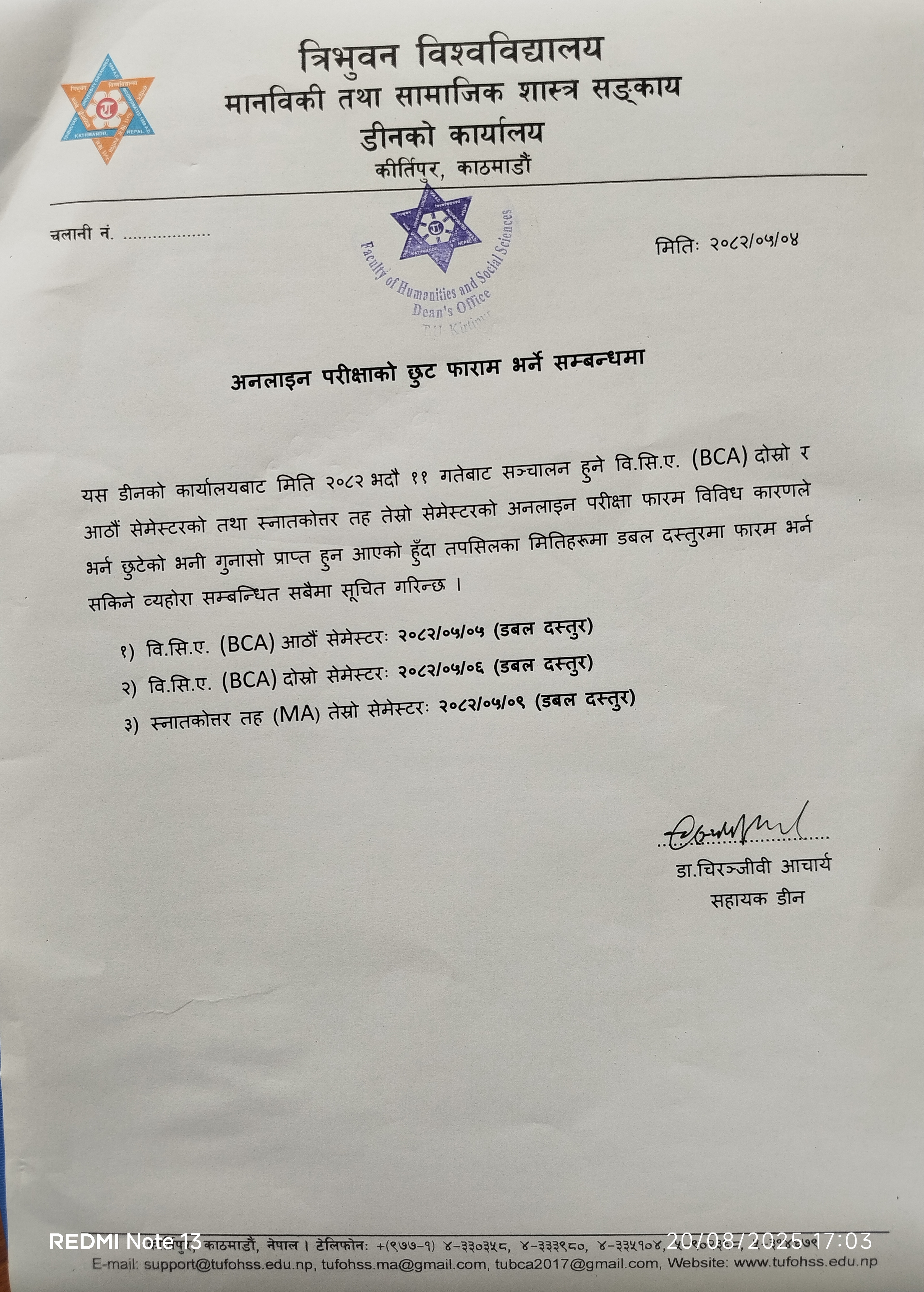 अनलाइन परीक्षा फाराम भर्ने सम्बन्धमा ।