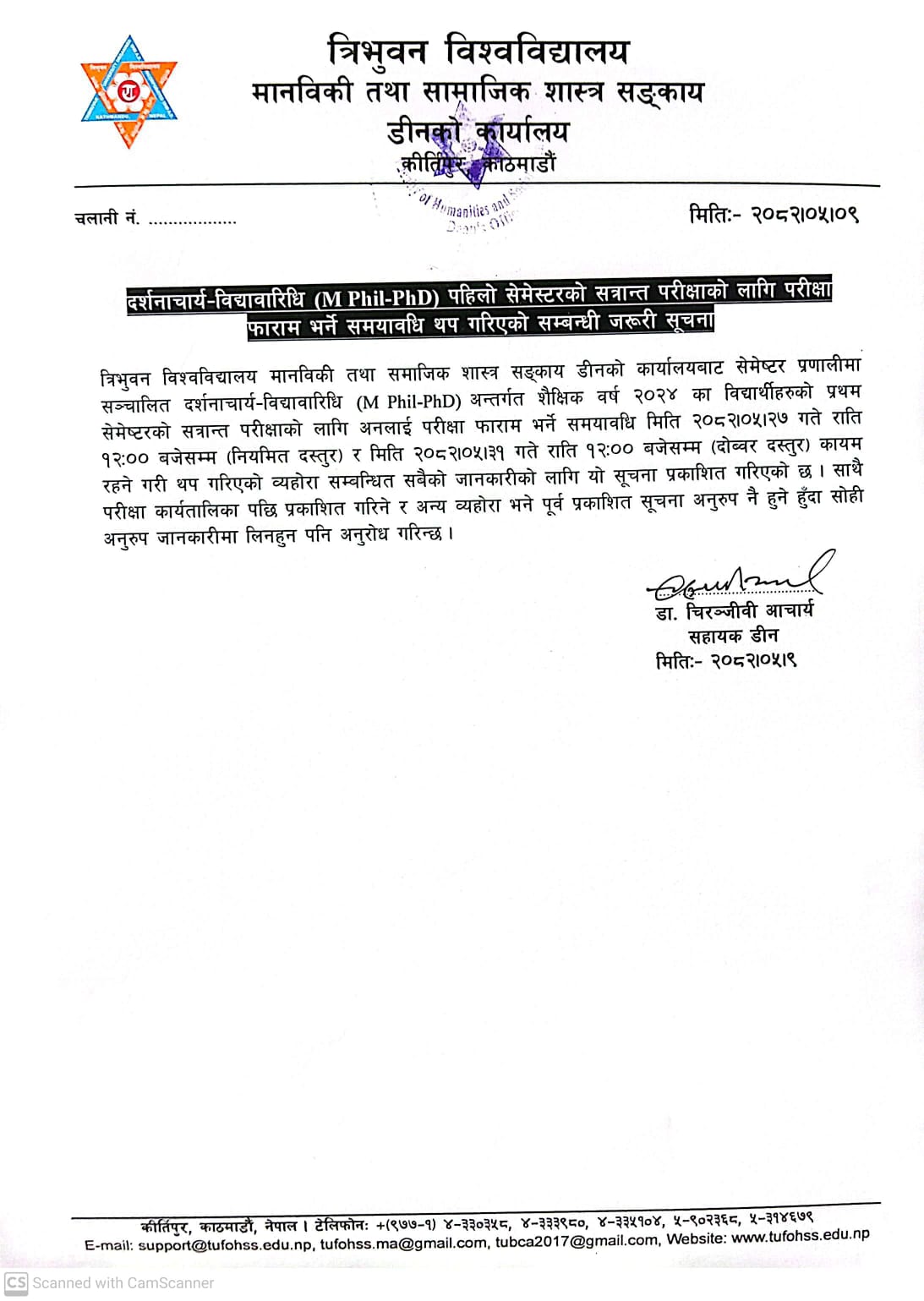 दर्शनाचार्य–विदावारिधि पहिलो सेमेष्टरको सत्रान्त परीक्षाको लागि परीक्षा फाराम भर्ने समयावधि थप गरिएको सम्बन्धी जरुरी सूचना